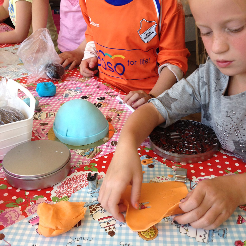 We geven ook workshops bij je thuis als kinderfeestje. Iedereen krijgt dan een boltaartje om te vullen, te bekleden en te versieren. En na afloop van het feestje krijgt iedereen zijn eigen taart mooi ingepakt mee naar huis. Deze workshop duurt ongeveer 3 uur en kost € 15,00 p.p. inclusief alle materialen.